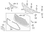 Grille Bracket Clip, Upper Trim Panel Clip, Upper Grille Clip, Bumper Cover Upper Clip, Inner Grille Clip, Mount Bracket Clip, Seal Retainer Clip, Bumper Cover Clip, Upper Seal Clip, Grille Reinforcement Clip, Lower Grille Clip, Upper Seal Fastener, Grille Retainer, Outer Molding Clip, Bumper Cover Retainer, Clip